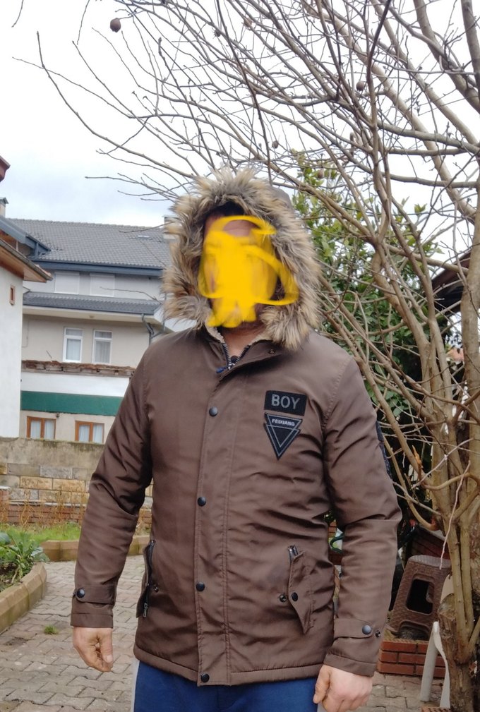 Kürk detaylı kapüşon ve kamuflaj desenli, haki erkek mont. Uzun kollu ve normal boyda, sokak stiline uygun, dar kesim.Haki rengi