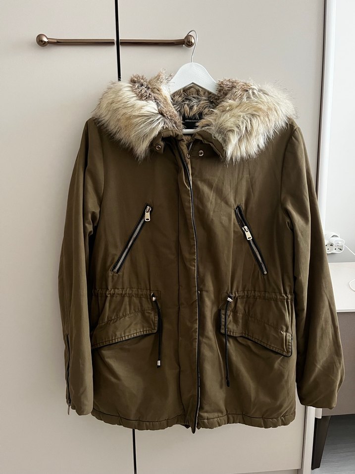 Kahverengi renk, kürk detaylı kapüşonlu, bol kesim ve çıtçıtlı. Uzun kollu, parlak yüzeyli midi boy, yumuşak kumaştan üretilmiştir. Deformelerini çektim bunu göz önünde bulundurarak alınız