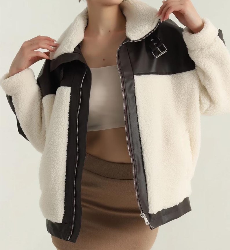 Kürk detaylı, kahverengi midi kadın ceket, rahat kesim ve kayışlı askılı kollara sahiptir. Yumuşak ve sıcak kumaştan günlük sokak tarzına uygundur.