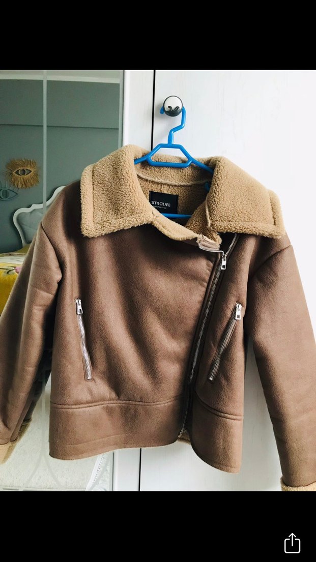 Kürk Detaylı Kahverengi Süet Kadın Ceket