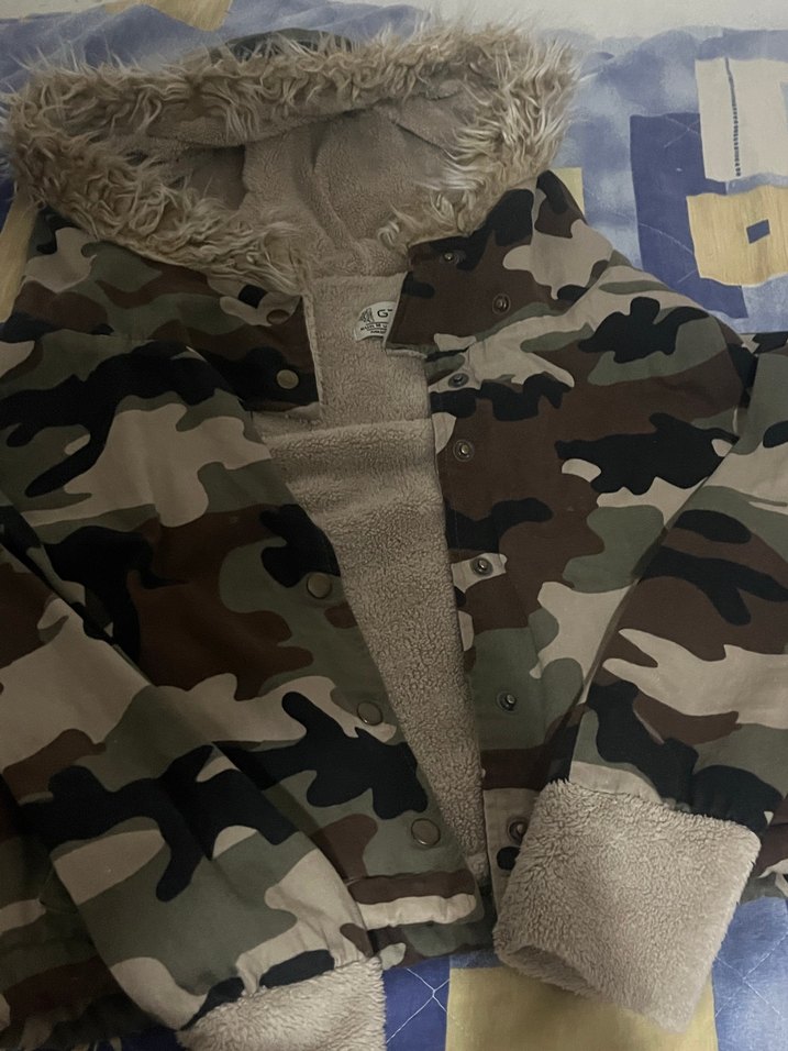 Kadınlar için bol kesim, midi boy kamuflaj desenli ceket. Yaka ve manşetlerde kürk detaylı, yumuşak sentetik kumaştan ( hiçbir sorunu sıkıntısı yok