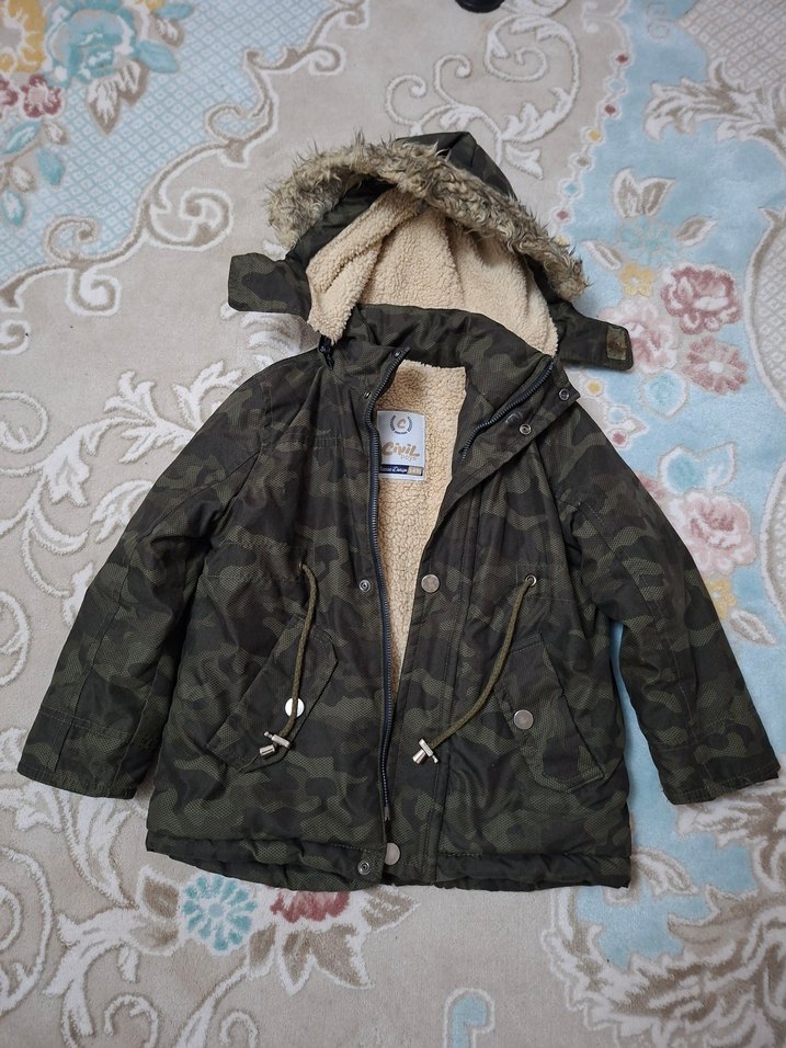 Kürk detaylı kapüşonlu, kamuflaj desenli koyu kahverengi erkek çocuk montudur. İç kısmı yumuşak ve sıcak tutan fleece kumaşla kaplanmıştır. Rahat ve bol kesimdir. ürün temiz kullanılmıştır hiçbir kusuru yoktur kapüşonu fermuarlıdır çıkarılabilir 3-4 yaş uyumludur