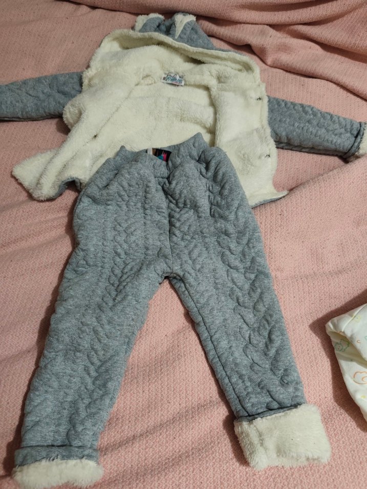 Kürk detaylı kapüşonlu, işleme desenli gri bebek tulumu, sıcaklık ve rahatlık sunar. ❄️