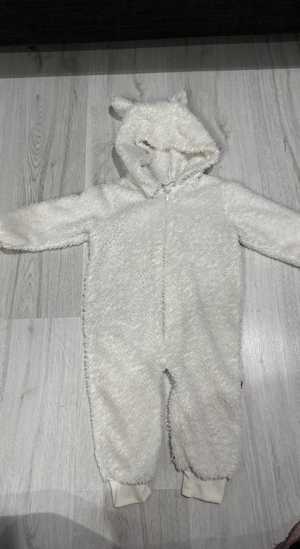 Kürk detaylı kapüşonlu gri bebek tulumu, yumuşak dokusu ve fermuar kapanışıyla sıcak tutar. Soğuk havalar için uygundur. ❄️