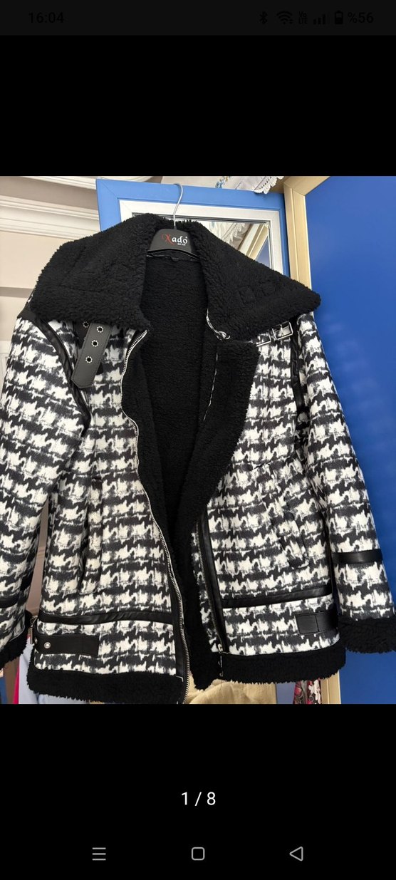 kaz ayağı desenli, kürk detaylı, kesimli kadın ceket. deri detaylı çok tarz çok kaliteli havalı moda mont. iki koltuk arası 53 cm, boyu 65 cm. mağazada daha çok denenmiştir inanın. 40 beden de giyebilir. bu kalite sırf dolap boşaltıyorum diye basit bi markanın tişörtü fiyatına