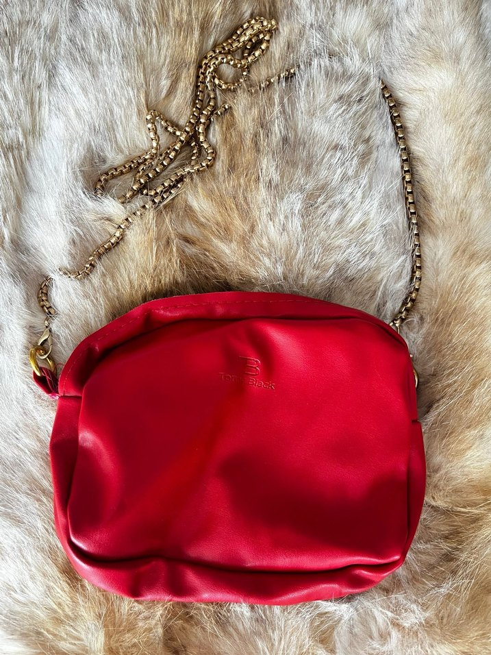 Bu cesur kırmızı deri kadın çanta, parlak yüzey ve kürk detayına sahip. Zincir askılı, Paris tarzı ve günlük kullanıma uygun.