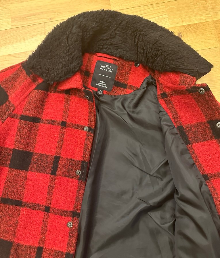 Mavi ekoseli yaka kürklü