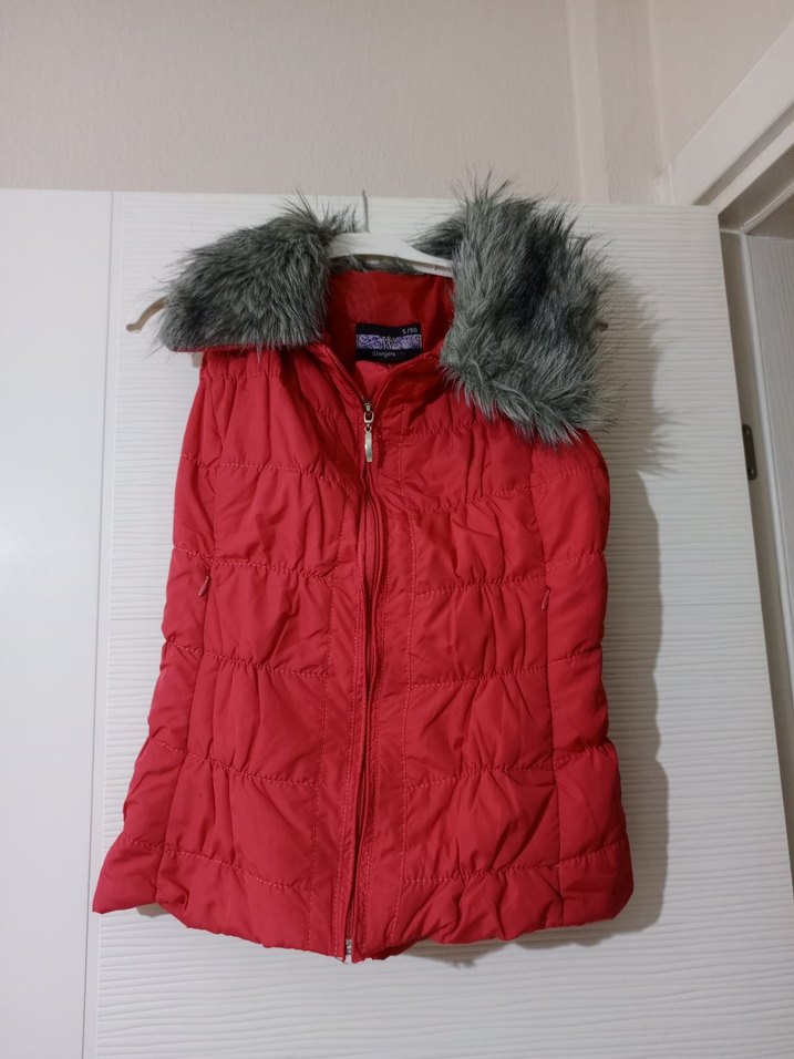 Kürk Detaylı Kırmızı Kadın Yelek