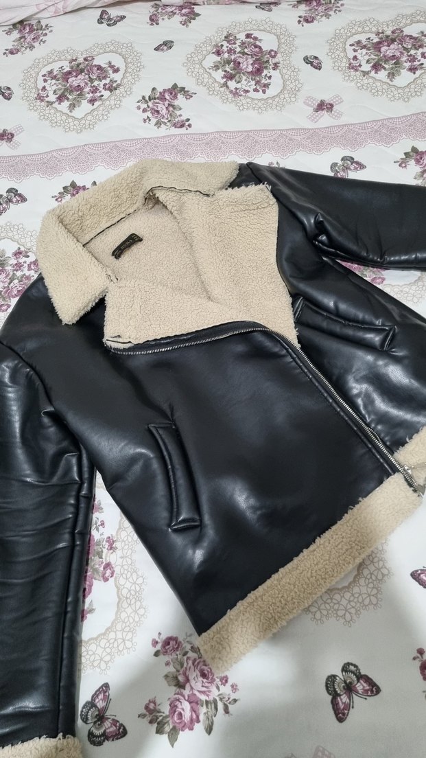 Kadınlar için kısa boy, bol kesim, uzun kollu biker tarzı kahverengi deri ceket. Yakada ve etek ucunda kürk detaylarıyla rahat ve şık bir görünüm sunar. Günlük kullanım için uygundur.