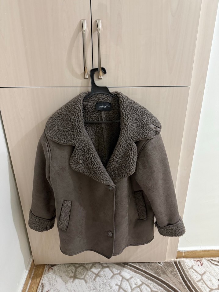 Kürk detaylı, kahverengi kısa nubuk ceket. Notlu yaka ve uzun kollu, bol kesim rahat bir tarz sunar. Temiz kusursuz