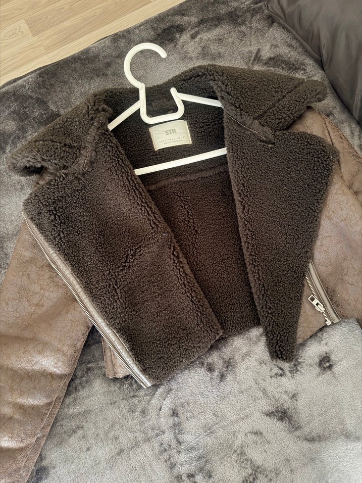 Kürk detaylı, süet malzemeden yapılmış, uzun kollu ve yaka detaylı, kısa kesim kahverengi kadın ceketi. Günlük kullanıma uygun, şık ve sokak stili tarzında. Sadece 1 kere giyinebildim küçük geldiği için satıyorum hiçbir yerinde en ufak bir kusuru yok ☺️