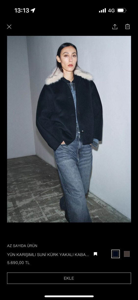 Lacivert denim kumaştan, kürk detaylı, bol kesim ve normal midi boy uzunluğunda, uzun kollu ceket. Günlük kullanıma uygundur. kürk detayı çıkabiliyor zaradan aldım bir kere giydim kombinleyemedim