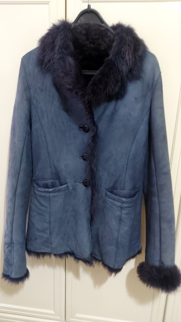 Kürk detaylı, lacivert süet kumaştan yapılmış, normal uzunlukta ve vücuda oturan kadın ceketi. Uzun kollu, yakası çentikli ve cep detaylı, ofis kullanımı için uygun şık tasarım. S M uyumlu sıcacık yumuşacık iç tüyleri