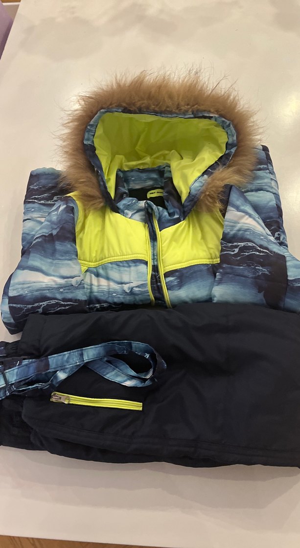 Kürk Detaylı Mavi Erkek Çocuk kayak Mont ve pantolon