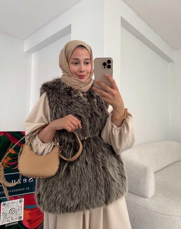 Yüksek yakalı, etnik desenli ve haki tonlarında kürk detaylı kolsuz midi yelek. Rahat ve bol kesimli, günlük sokak stiline uygun. MARKA TEMSİLİDİR