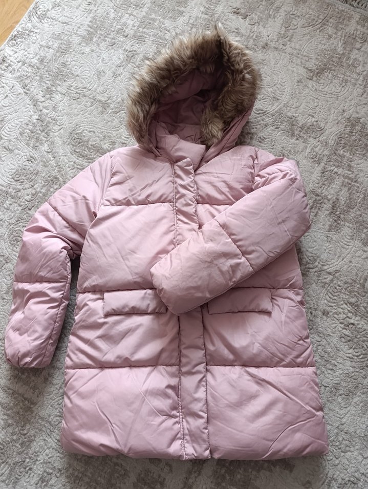 Pembe, kürklü kapüşonlu, uzun kollu ve normal uzunlukta kiz çocuk kışlık monttur. Yumuşak ve sıcak fleece kumaştan üretilmiş, rahat ve şık bir görünüme sahiptir.