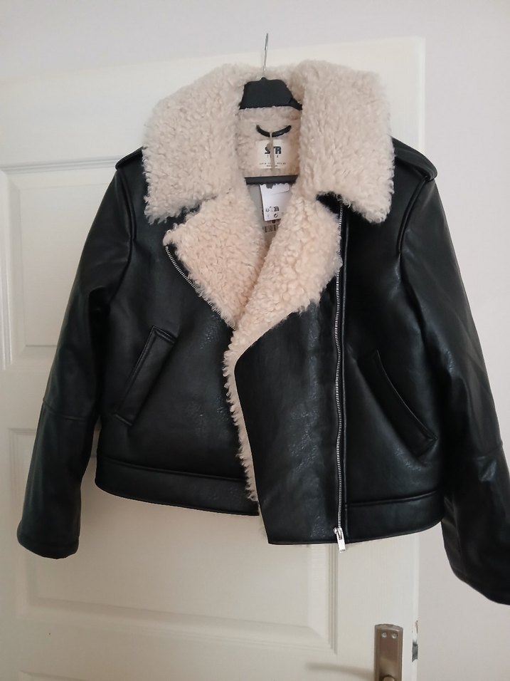 Siyah, kürk detaylı, notched lapel yakalı, midi uzunlukta, normal kesim deri biker ceket., rahat ve şık.