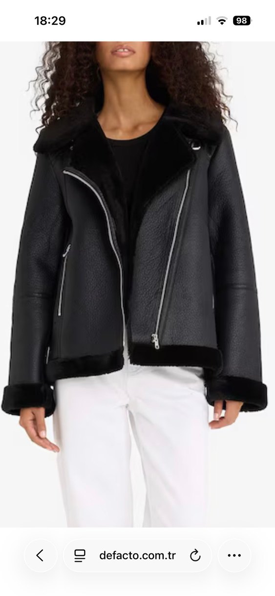 Kürk detaylı siyah deri biker ceket, notched yaka ve normal uzunlukta. Uzun kollu ve regular fit kesim, günlük kullanım için uygun.