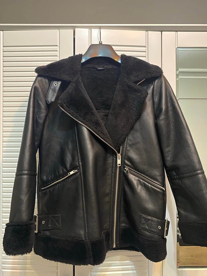 Kürk detaylı, siyah deri biker ceket. Çentikli yaka ve kayışlı kollarıyla, günlük kullanıma uygun, normal boyda ve regular fit. Temiz kullanıldı hiçbir kusuru yoktur. Ürün boyu 80 cm’dir.
