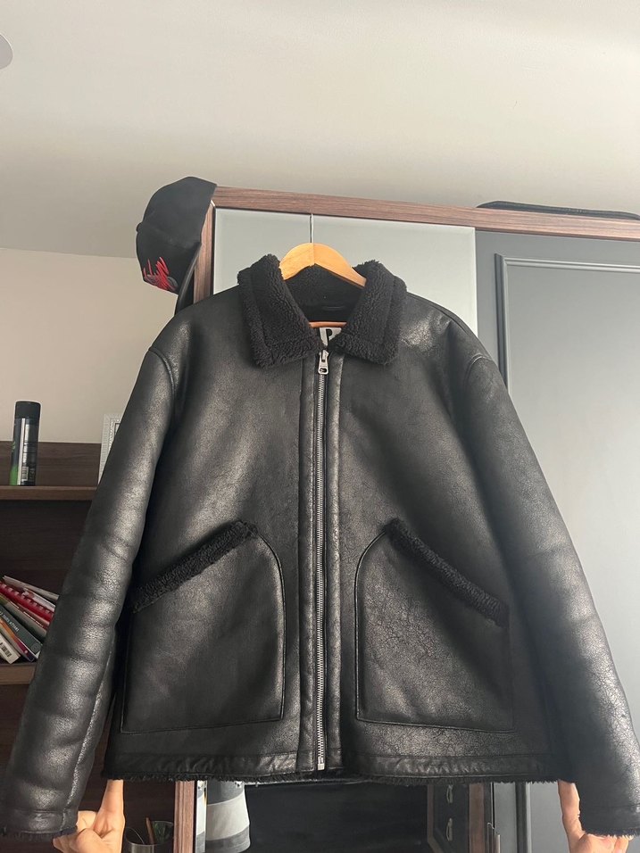 Kürk Detaylı Siyah Deri Ceket