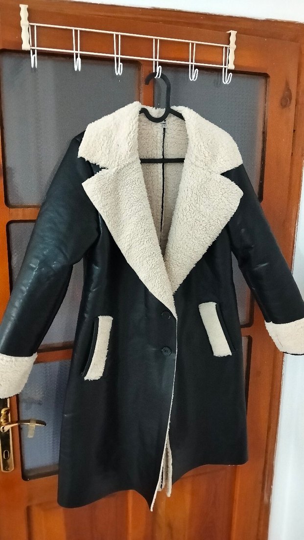 Kürk detaylı, siyah deri kadın ceket. Notlu yaka, uzun kollu ve regular fit kesimle sokak modasına uygun uzun boy. dar geldiği için satıyorum