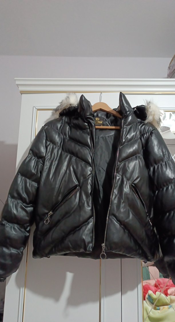 Kürk detaylı kapüşonlu, siyah deri kadın kışlık ceket. Oturmalı kesimi, kesik yaka ve kordonlu kollara sahiptir. Midi uzunlukta, günlük sokak tarzına uygundur.