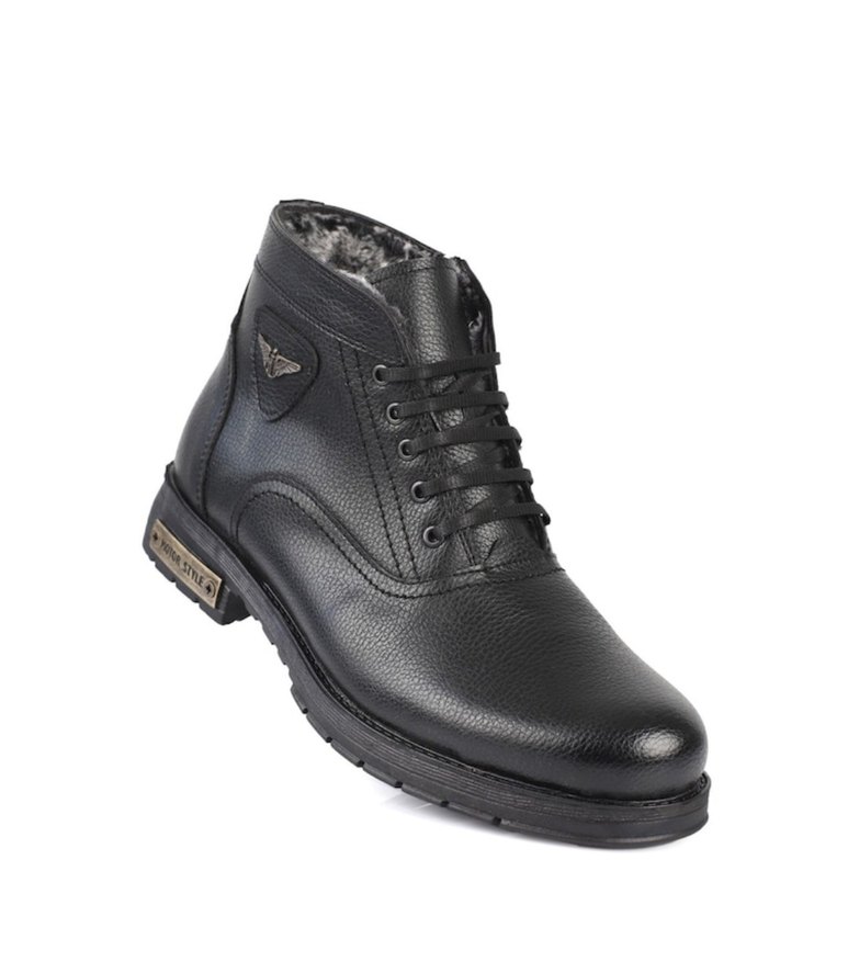 Kürk Detaylı Siyah Erkek Deri Biker Bot Şokk fiyatt