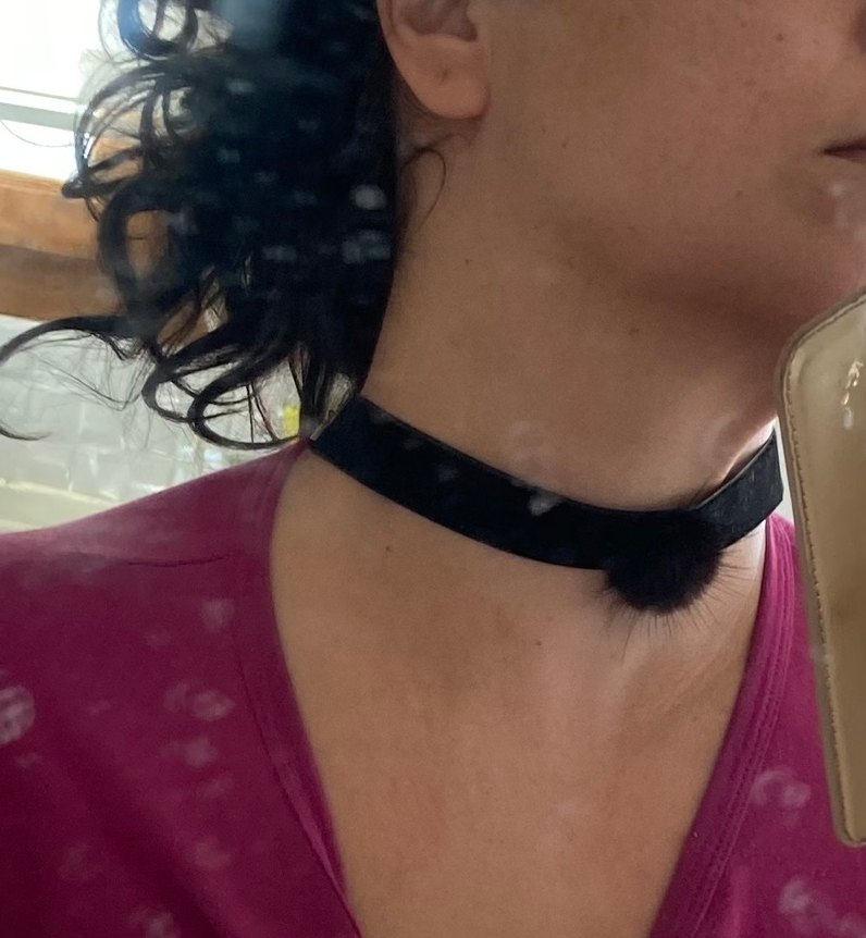 Kürk detaylı siyah gotik kolye, normal midi uzunlukta olup günlük grunge punk tarzına cesur bir dokunuş katıyor.
