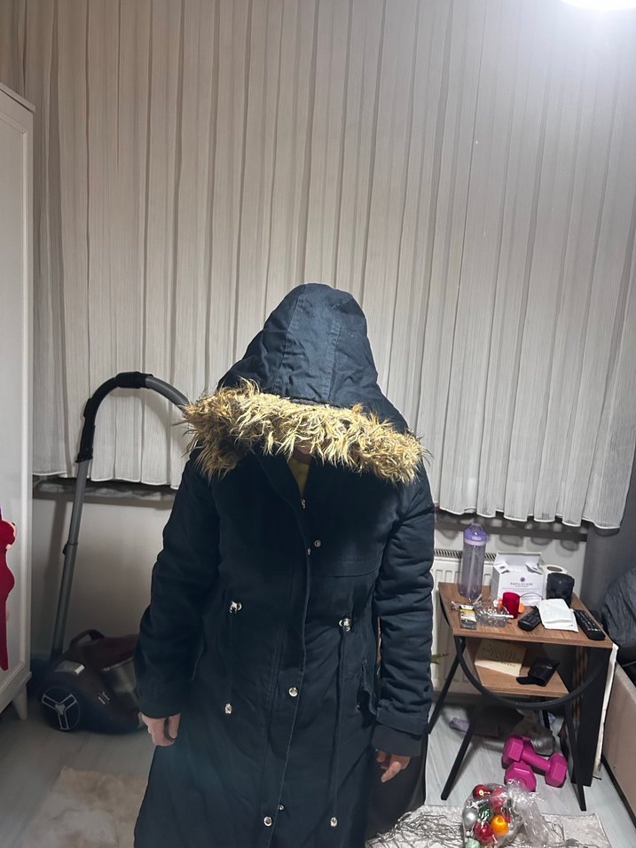 Kürk detaylı kapüşonlu, notched lapel yakalı siyah kadın kışlık ceket. Strappy kollu, midi boy ve yumuşak sıcak kumaştan üretilmiştir. Günlük kullanıma uygundur. ❄️
