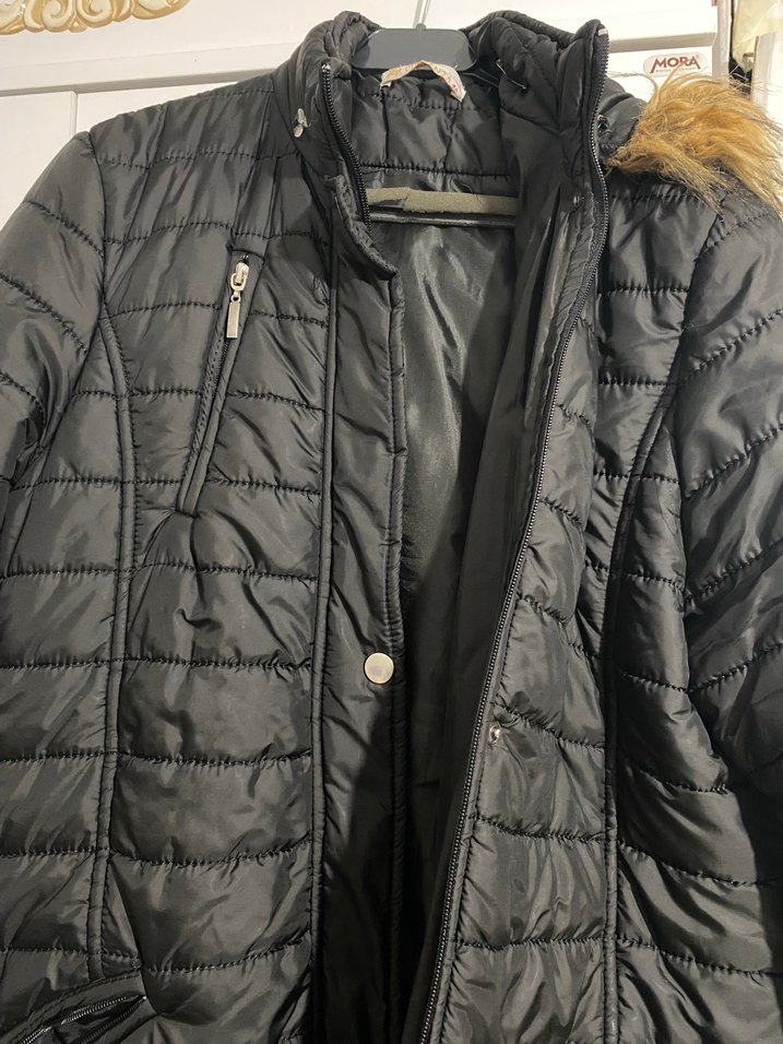 Kürk detaylı, siyah, normal boyda, uzun kollu, dar kesim kadın kışlık mont şehir stili ve rahatlık sunar. ❄️ defosuz sıcak tutuyor yeni gibi ÖLÇÜLERİ :Boy 117 cm göğüs çevresi 112 cm