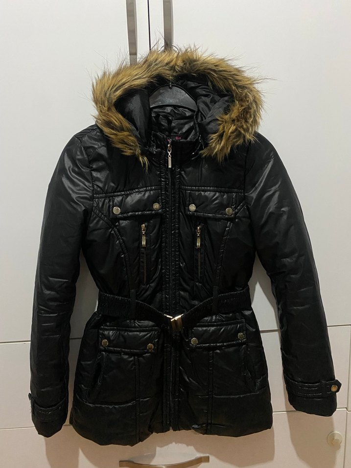 Kürk Detaylı Siyah Kadın Kışlık Mont