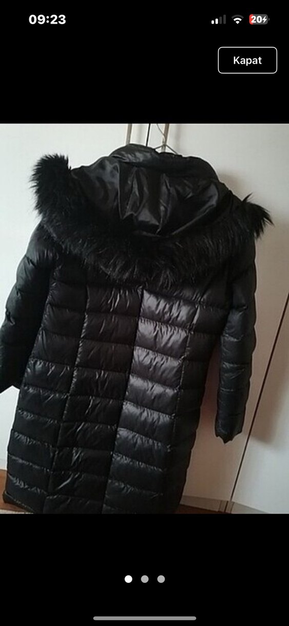 Kürk detaylı, yüksek yakalı siyah kadın kışlık mont. Yumuşak sentetik kumaştan, rahat ve gotik tarzda, günlük kullanıma uygun.