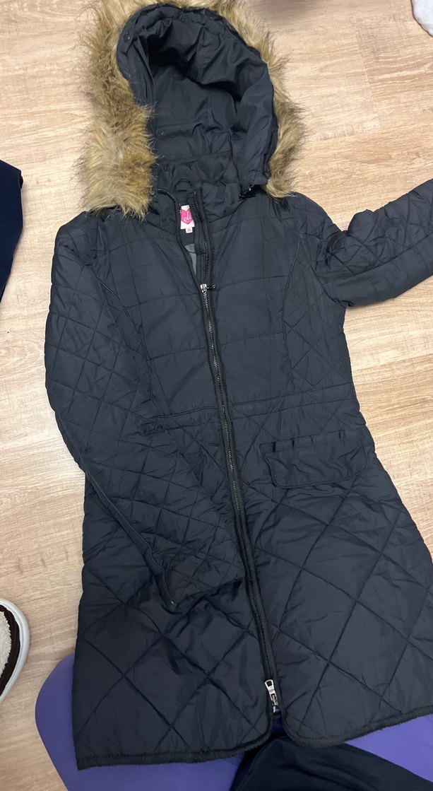 Siyah, kürk detaylı kapüşonlu, uzun kesim, yumuşak ve sıcak kumaştan yapılmış, kadın kışlık mont. Fitted kesimi ve çıtmalı yaka ile rahat ve şık.