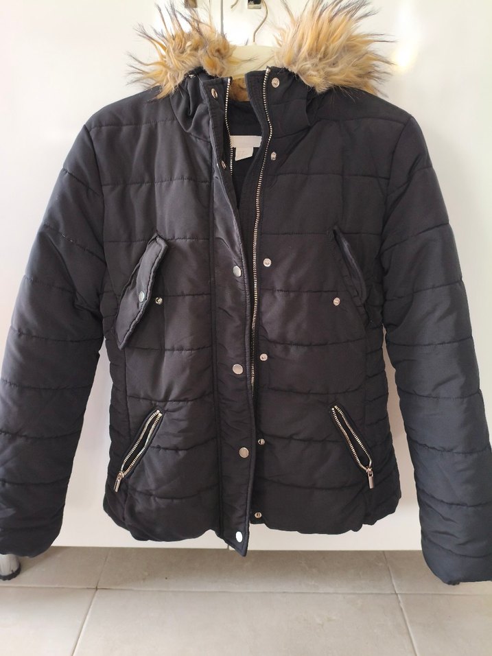 Kürk detaylı kapüşonlu siyah, fitted kesim mont. Normal boyda, çıtçıtlı ve fermuarlı ceplerle, günlük kullanıma uygun. Tertemiz, sağlam yıpranması deformasyonu söküğü yoktur. #kapüşonlumont#h&m#mont#kadınmont