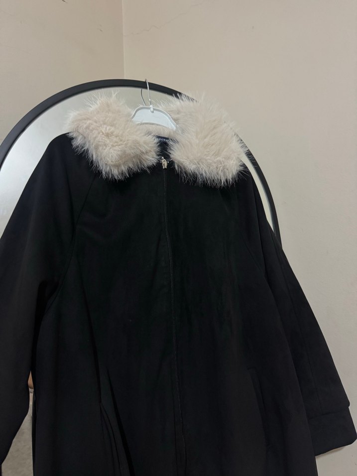 Kürk Detaylı Siyah Kadın Uzun Kollu Kaban