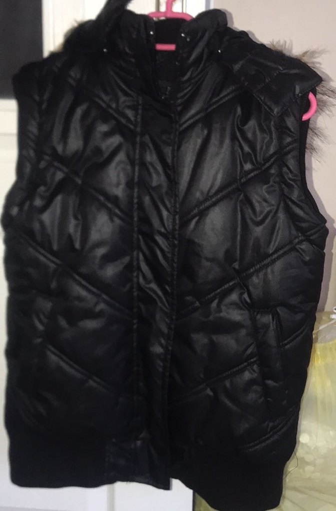 Kürk detaylı, yüksek yakalı, siyah kadın yelek. Yumuşak sentetik kumaştan, kolsuz ve midi boyda, günlük kullanıma uygun.