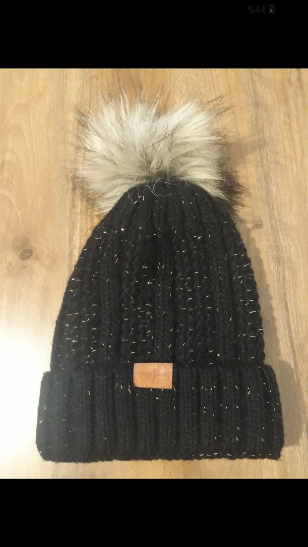 Siyah renkli, örgü kadın bere, kürk detaylı ponpon ile sıcak ve rahat bir tarz sunar.