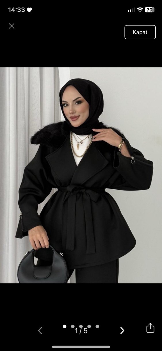 Kürk Detaylı Siyah Kısa Kadın Kaban