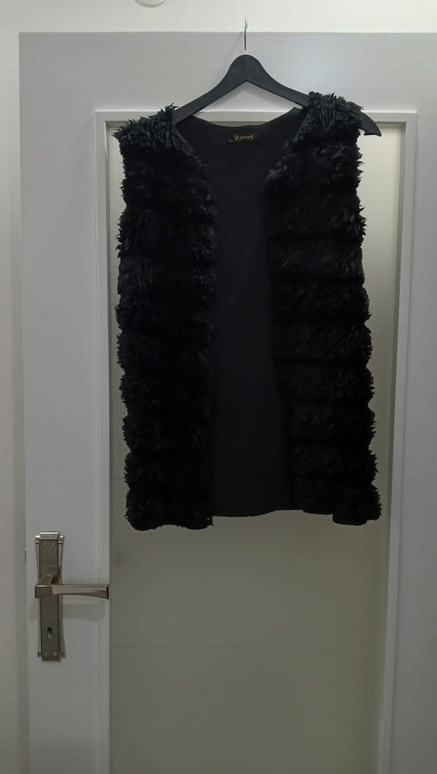 Kürk Detaylı Siyah Kolsuz Midi Yelek