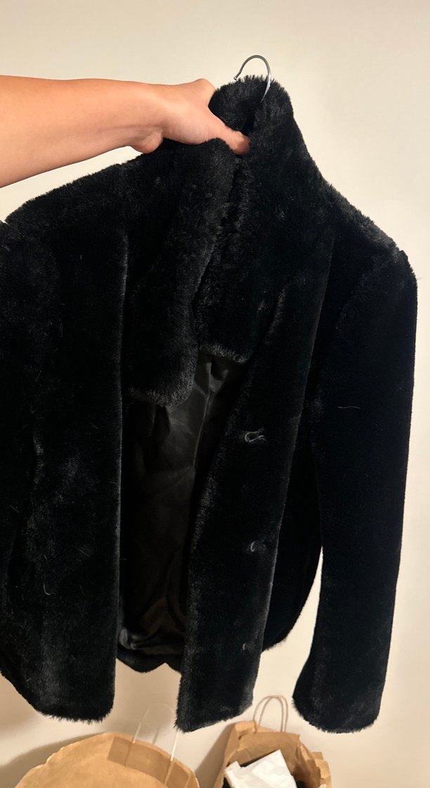 Kürk detaylı, siyah süet midi uzunluğunda, uzun kollu ve dar kesim ceket. Notch yakası ile gotik ve şık bir tarz sunar.