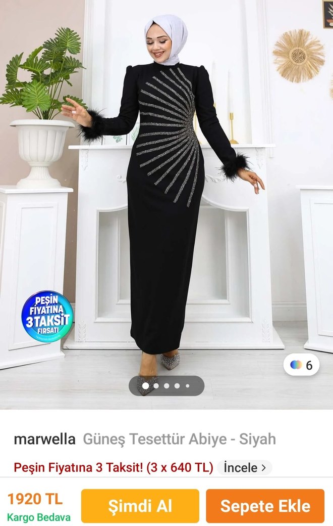 Kürk Detaylı Siyah Uzun Kadın Abiye Elbise 4 saat giyildi