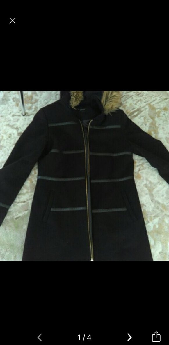 Kürk detaylı kapüşonlu, uzun kollu, siyah kadın ceketi. Yumuşak ve sıcak kumaştan, rahat ve sokak tarzı uyumlu.