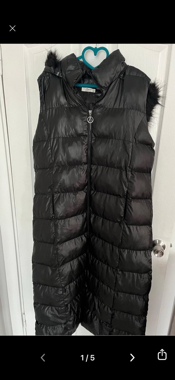 Yumuşak sentetik kumaştan yapılmış, kürk detaylı, yüksek yakalı ve uzun siyah kadın yelek. Kolsuz ve desen içermeyen, rahat sokak stili için uygundur.
