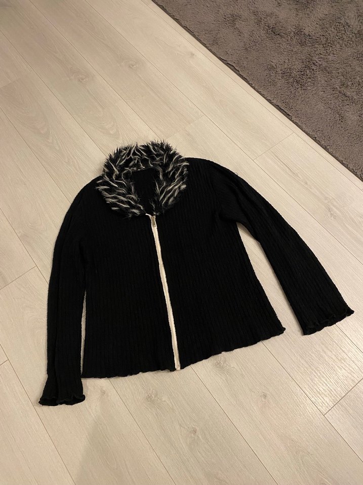 Kürk detaylı yüksek yakalı, uzun kollu ve fitted kesim siyah kadın kazak. Yumuşak ve sıcak kumaştan, günlük kullanıma uygun goth tarzında.