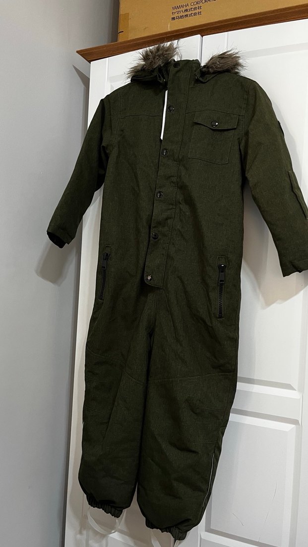 Kürk detaylı, su geçirmez, yeni gibi tertemiz, şapka ve kürk kısmı çıkarılabilir kayak tulumu