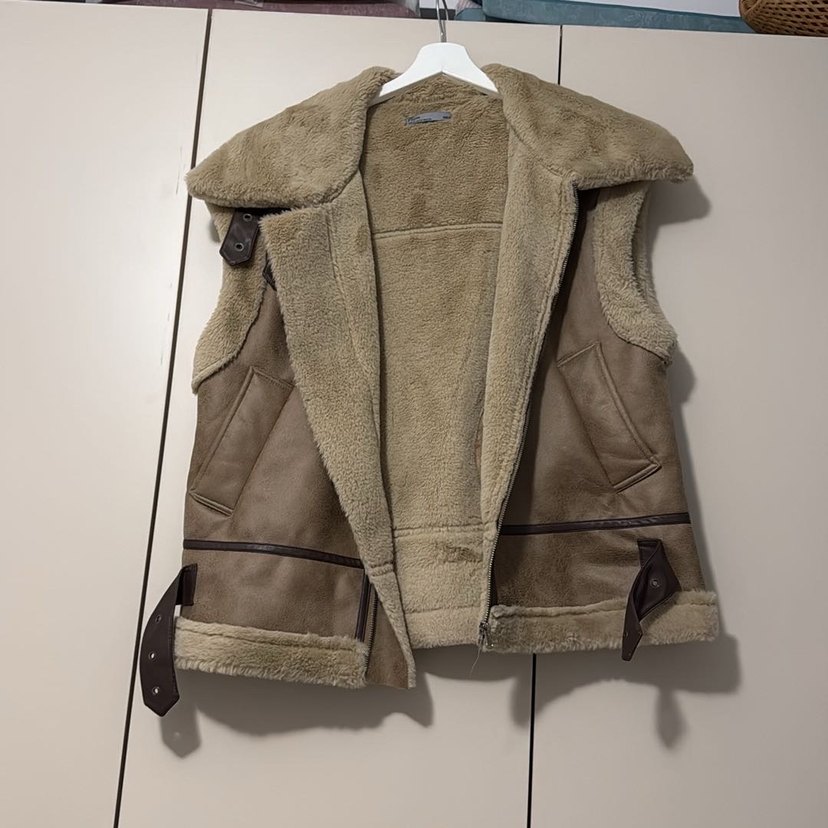 Kürk Detaylı Süet Kahverengi Kolsuz Ceket