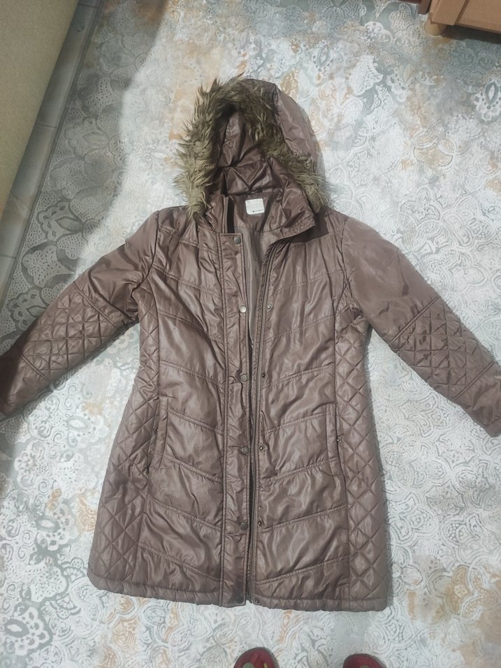 Kadınlar için kürk detaylı kapüşonlu uzun kışlık mont. Sentetik kumaştan, düz kesim ve yakalı, günlük kullanıma uygun rahat sokak stili.