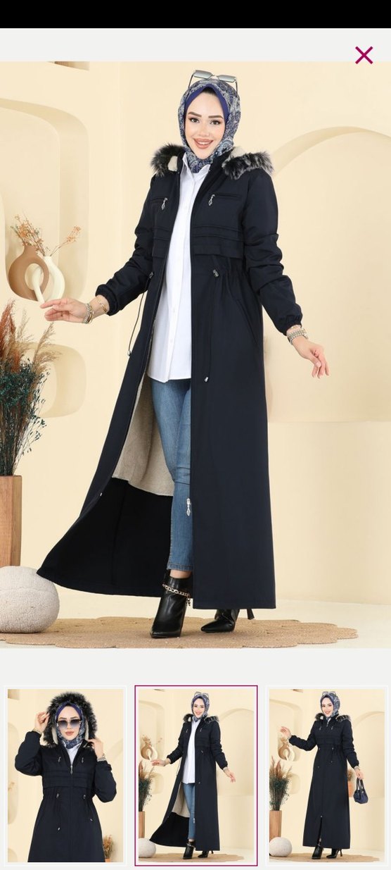 Kürk detaylı kapüşonlu, uzun kadın trençkotu. Salaş kesim, çentikli yaka ve uzun kollu, sentetik kumaştan üretilmiştir. Günlük kullanıma uygundur.