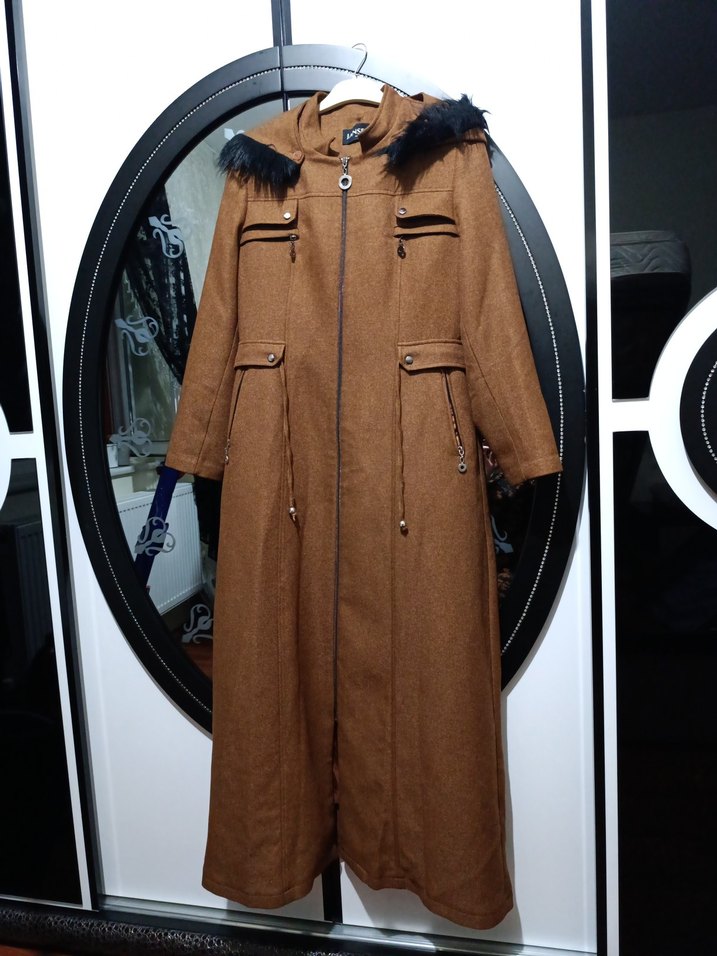 Kürk detaylı uzun kaban çok kaliteli kumaşı vardır tüylenme vesaire olmaz