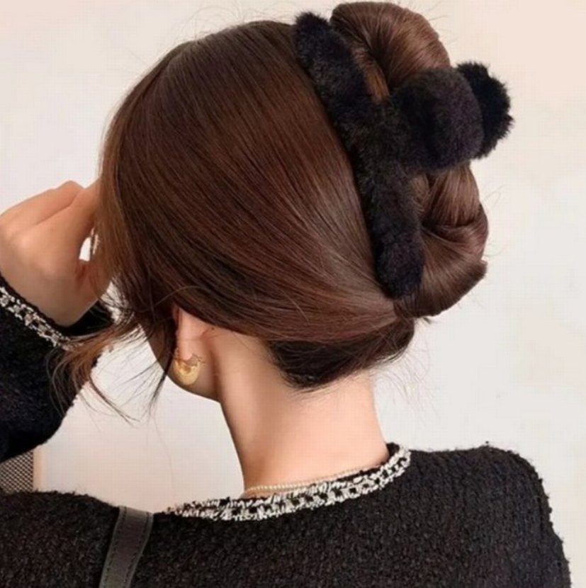 Kürk Detaylı Yün Saç Tokası - Pastel Renkler